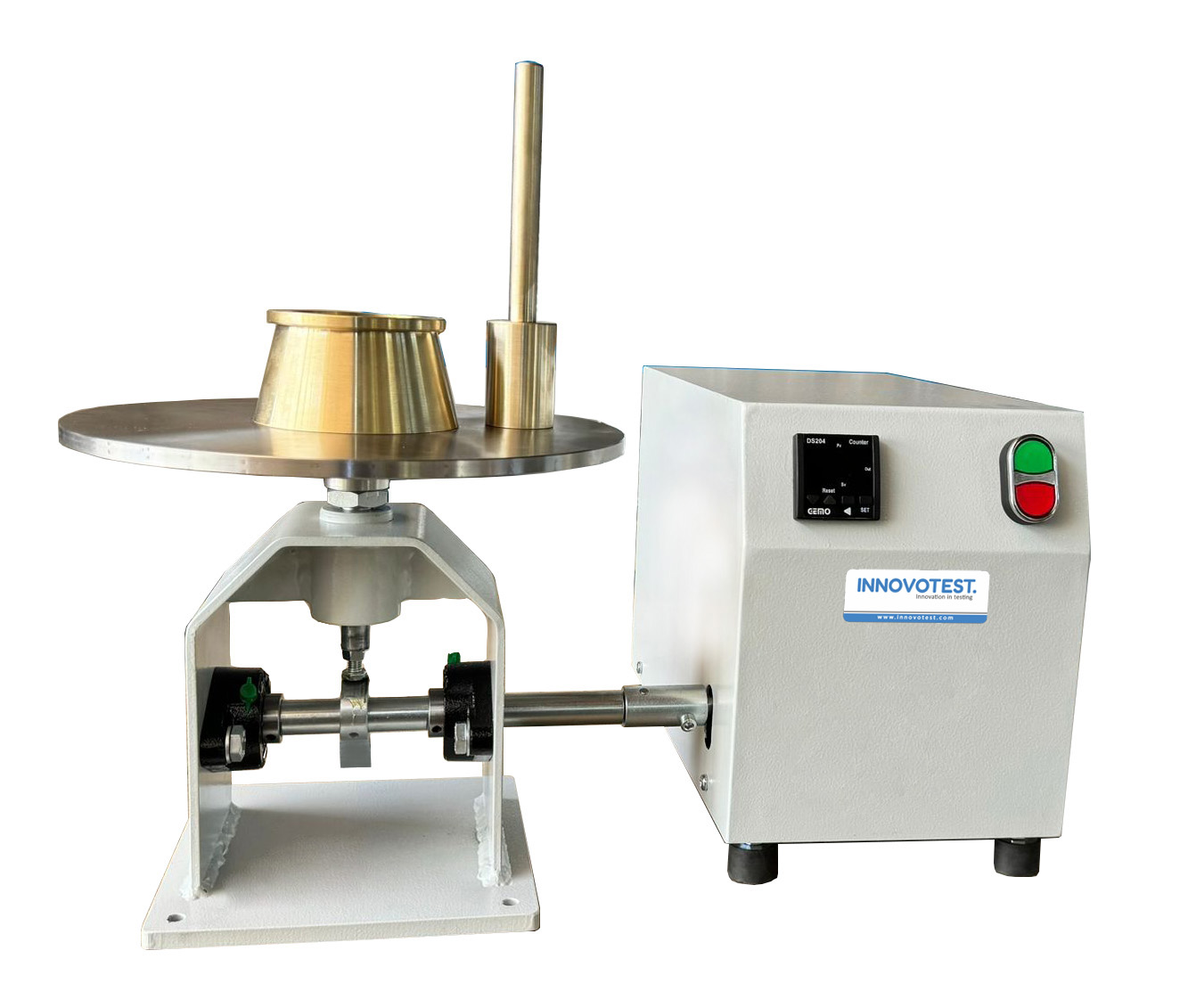EN model, the table is manufactured from stainless steel and has a 300 mm diameter table. The conical mould is made of stainless steel and has dimensions of 100 mm base dia. x 70 mm top dia. x 60 mm height.
